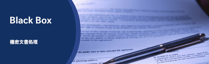 弊社は、お客様の重要なドキュメント(機密文書等)をお預かりし、情報加工を行っていく上で不要となったドキュメントについて、安全かつスピーディーなリサイクル方法を追求するために、BLACKBOXというシステムを導入しています。