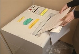 この方式により、お客様の機密文書は機密が守られたままで回収され、運送時もGPS運搬車両をインターネットで追跡できるシステムを導入し、最終溶解処理により100%リサイクルされる仕組みを導入しています。